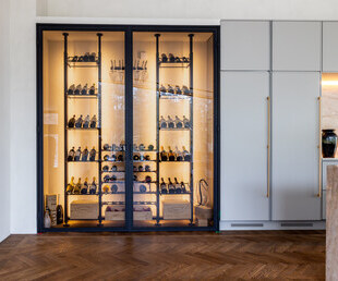 Con iluminación de fondo a lo largo de toda la altura de la instalación y una ingeniosa presentación de las botellas, Módulo-X está diseñado para exhibir tu vino de manera sobresaliente.